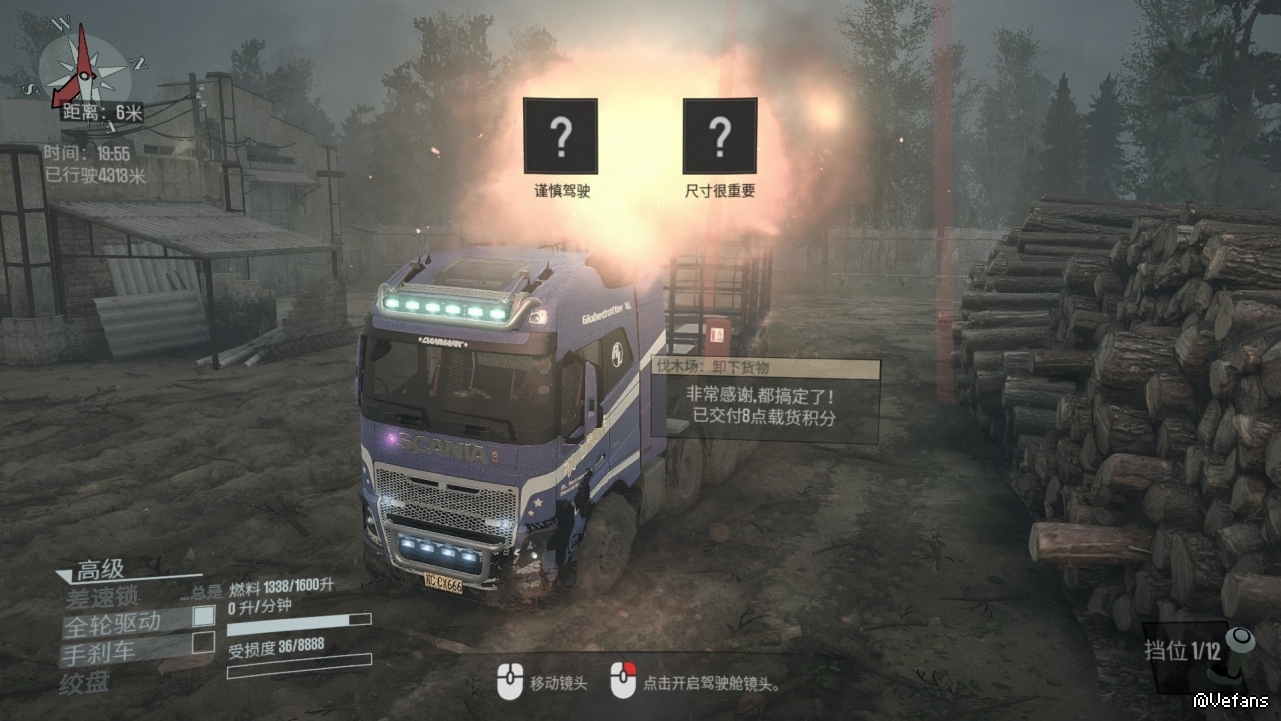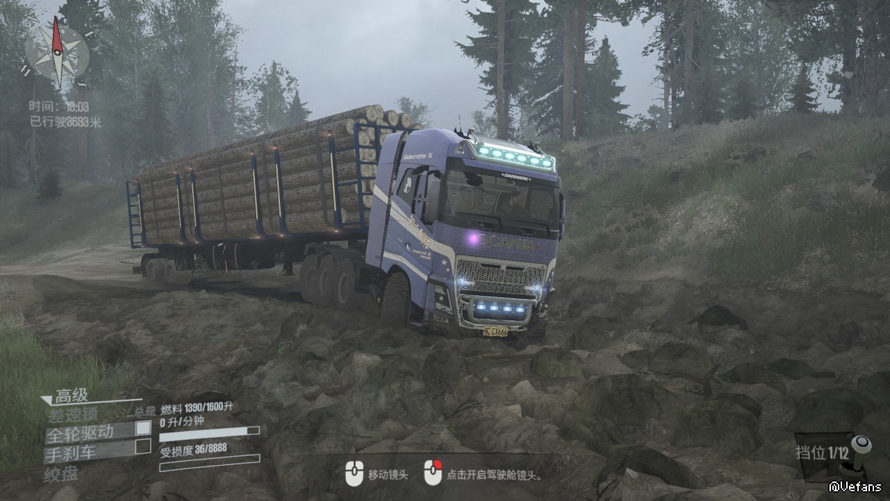 泥泞奔驰拉木头截图