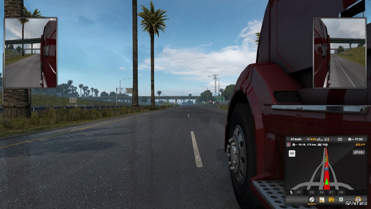 亲测最新版ATS运行无误。试用时雨天路面积水效果截图: