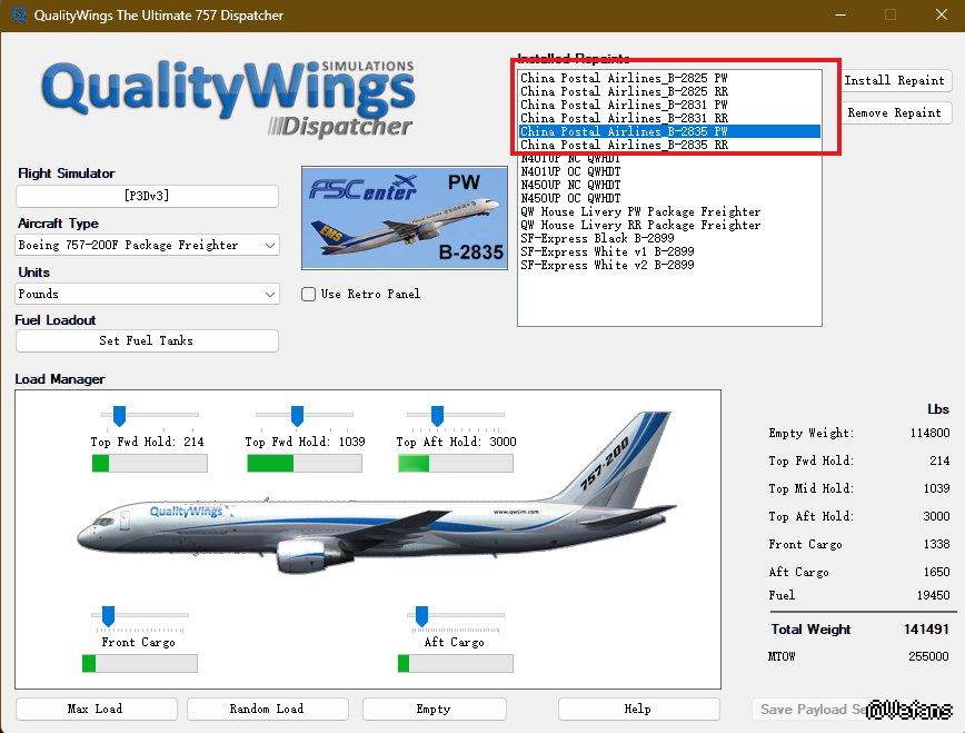 「QW Liveries」Boeing 757-200F Fracht China Postal CNPL EMS