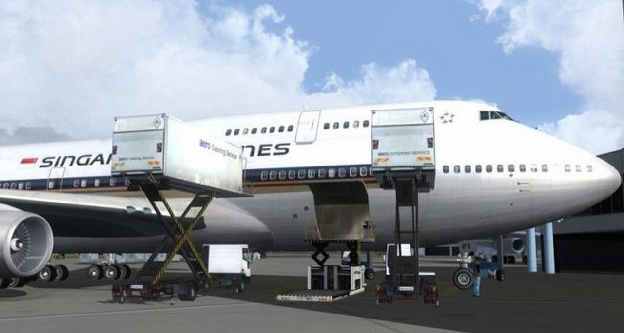 當你降落後,或起飛之前。引導車會在滑行道出口等著你,送你到你想去的停機位。引導車的速度還會和你的飛機同步,連轉彎的時候也會打起轉彎警示燈。接近停機位時,引導車會被停泊指揮員替代,他會指導你精確地停入位置。指導的同時還會通過耳機告訴你木楔有沒有放入。同一時間登機橋會緩緩地貼近機身。不僅一個,而是兩個登機橋,A380 甚至可以用三個登機橋。登機橋連接的位置由你設置。出發之前後收回,收回的時候在駕駛艙裡甚至能聽到登機橋的警報聲。地勤人員會駕駛後推車把你從機位推出,推出的位置要比FSX 默認後推準確多了。後推完畢後指揮員會通知你滑行到跑道。