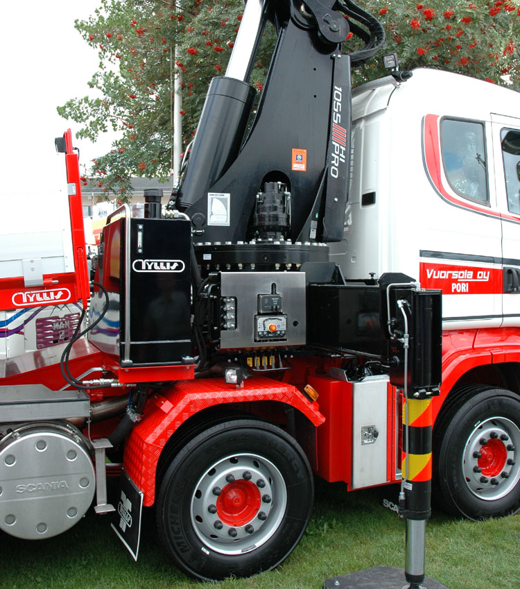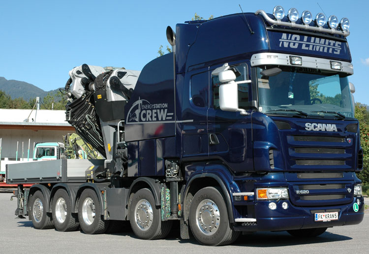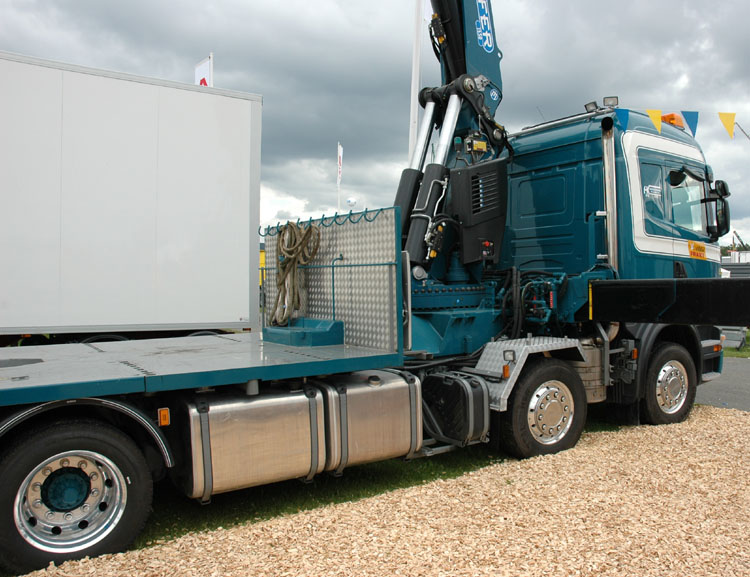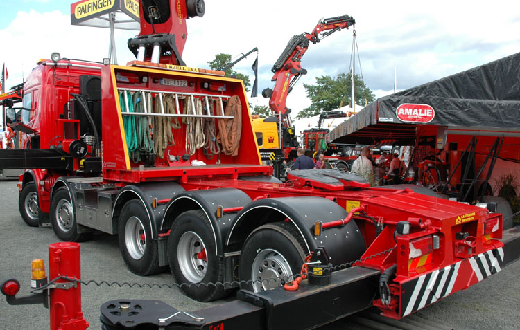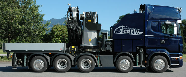 An 10x4 tractor with a Palfinger PK150002 crane