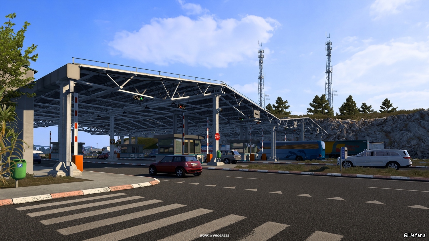 Whilst we don't want to make our players wait for long periods of time in traffic crossing between countries, our team has accurately recreated the crossing area, including the road network and structures built there to handle the busiest crossing points between these two countries.