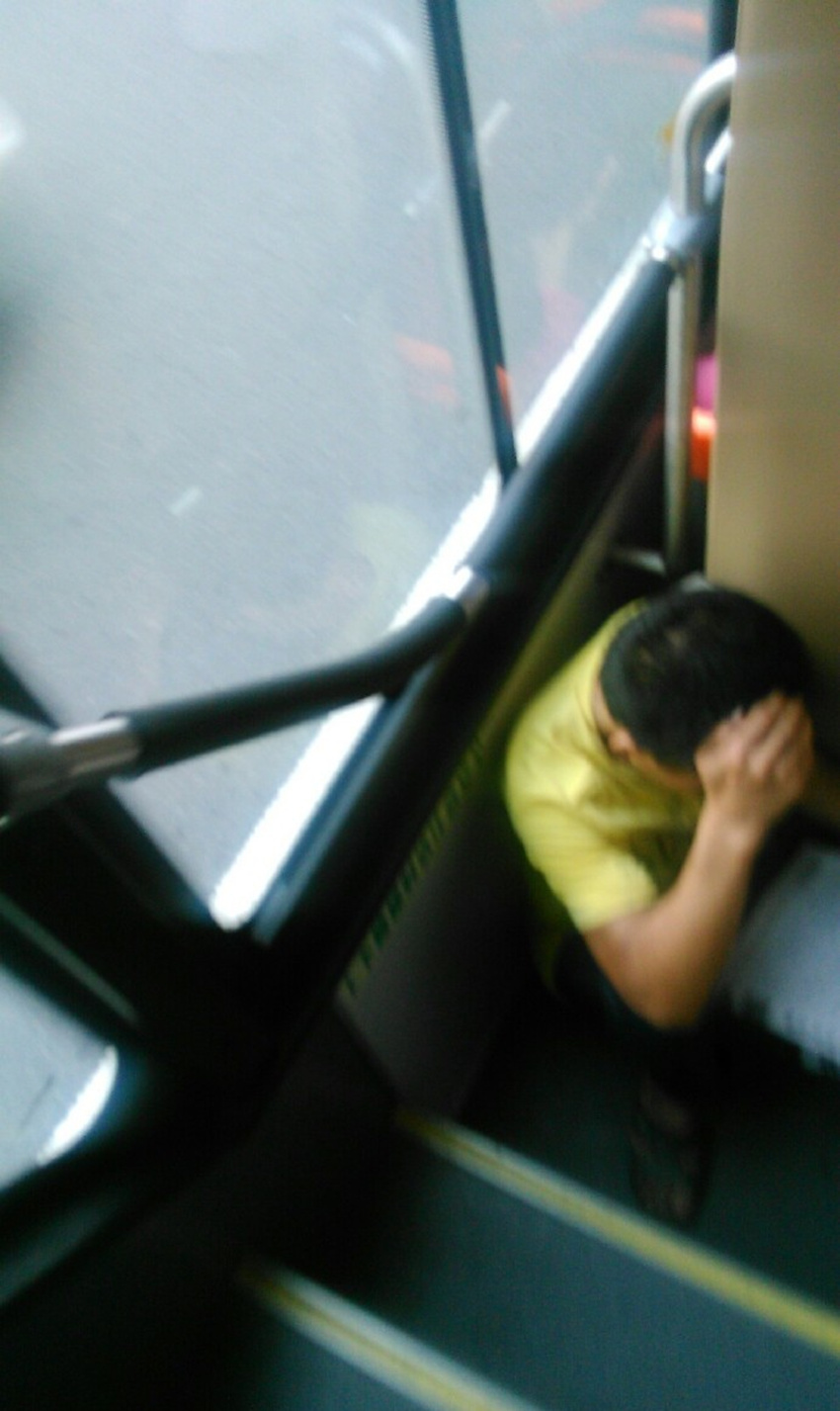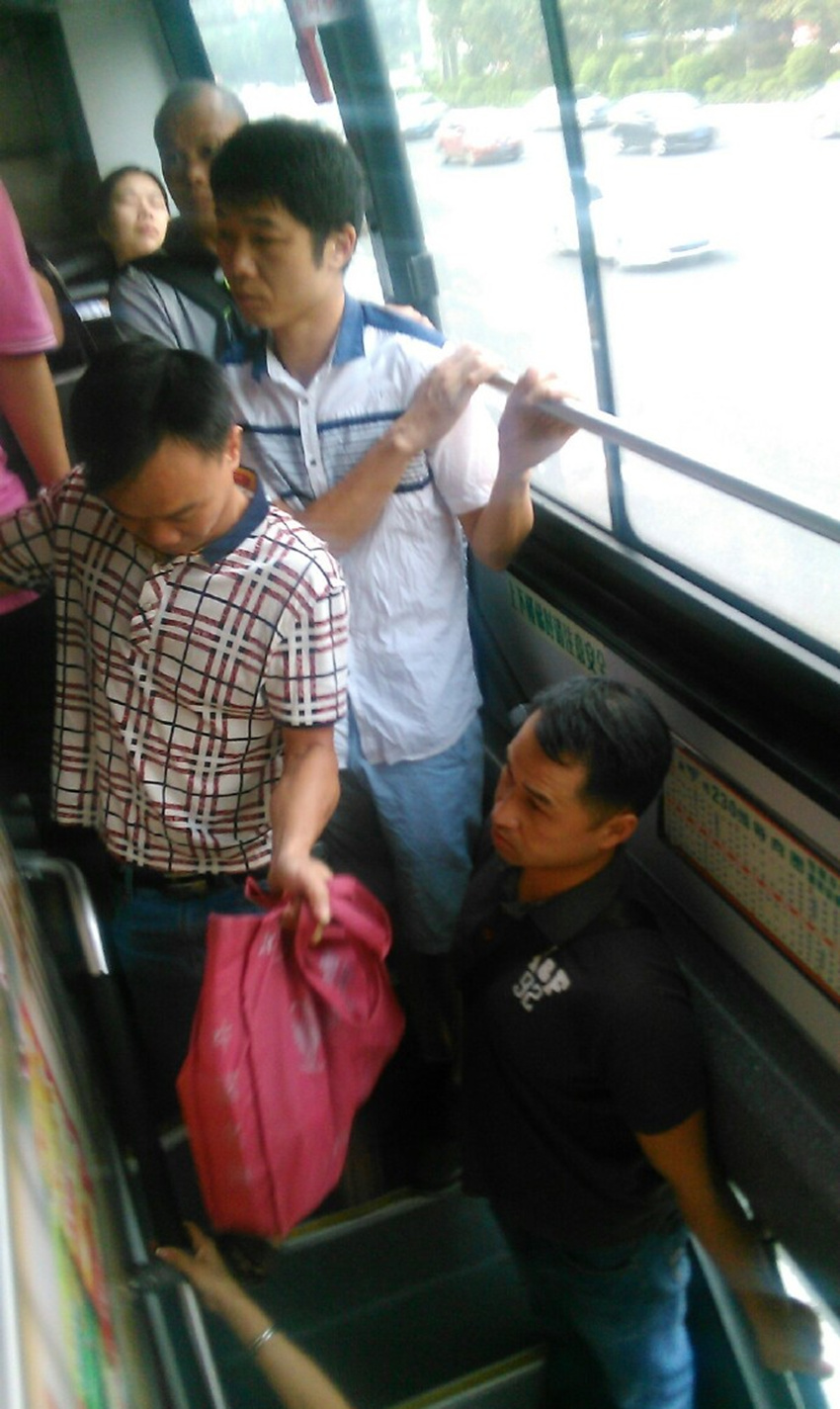 陈先生在五羊新城上班。昨日上午9时45分许,他从在保利花园站上了一辆新穗公司 230路双层巴士,准备回单位上班,他坐在2层,当时人不多。上午10时25分许, 巴士行至五羊村站和南方报社站中间的路段,陈先生要在南方报社站下车,他便走到二层楼梯口,准备下车。