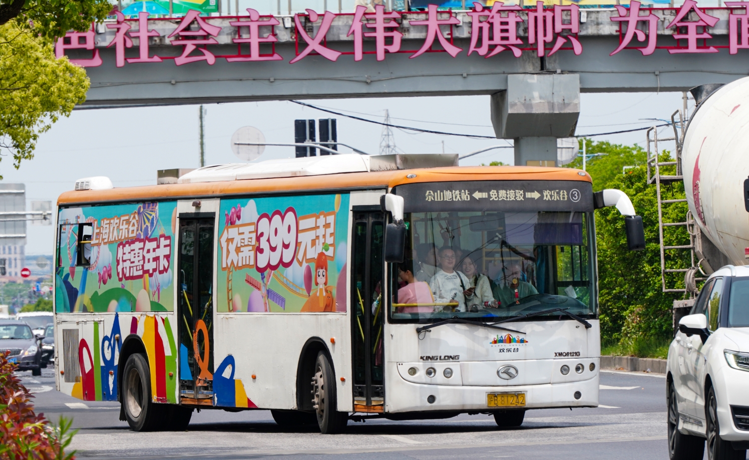 上海欢乐谷的天使龙XMQ6121G随拍,09年的车,如今仍然为游客们服务着