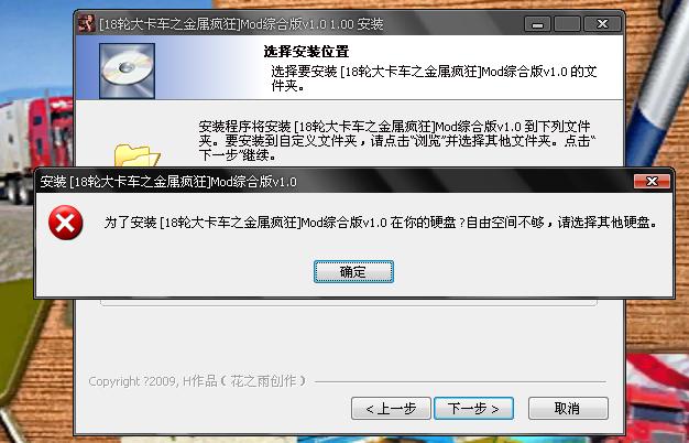 可是点击的时候跳出对话框,说是:自由空间不足,请安装在其他硬盘