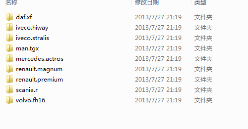 你是什么牌子的车就点哪个牌子【比如你是斯堪尼亚的车就点 scania.r】然后里面就有scs文件了