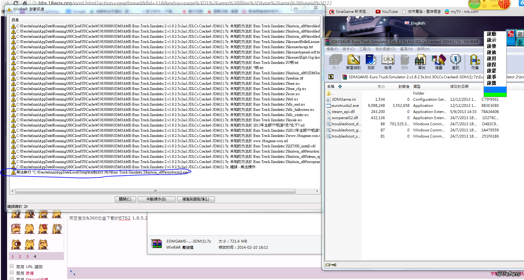 用百度云&360云盘下载的ETS2 1.8.2.5都不能开啟