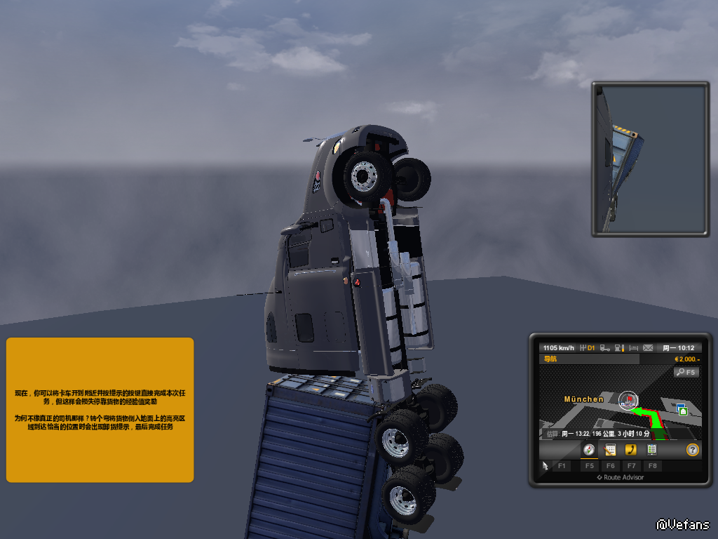 在模载上找到了卡车飞行的使用方法,结果后果不堪设想。看来还得多加练习啊~~
