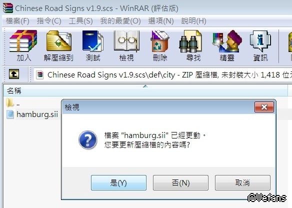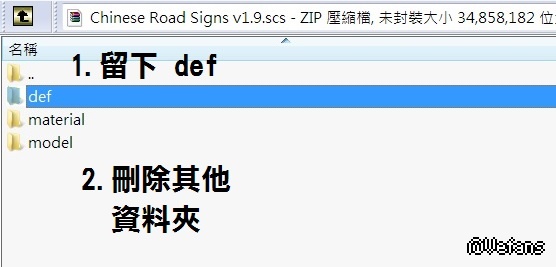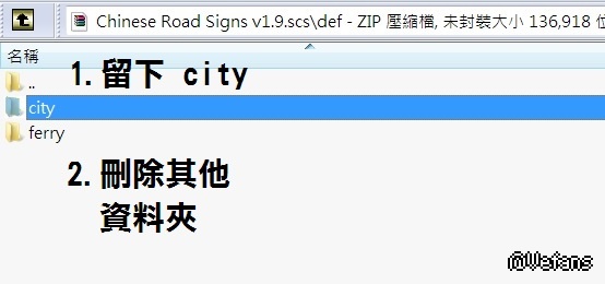 01.先將 Chinese Road Signs v1.9.rar 解壓,再雙點 Chinese Road Signs v1.9.scs 用解壓軟體開啟。