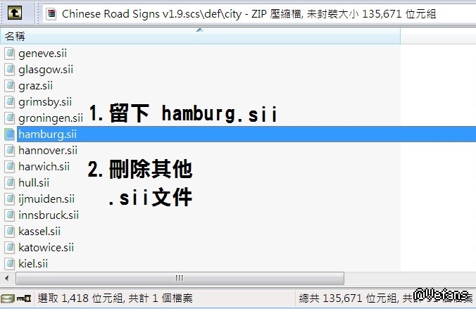 04.打開 "city" 資料夾,找到 "hamburg.sii" 文件,留下 "hamburg.sii" 文件,其他文件刪除。