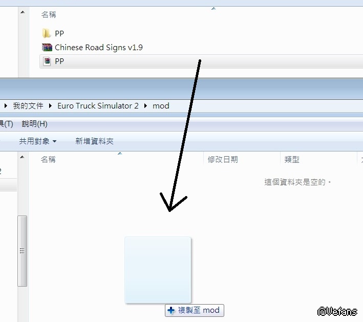 11.將改名後的 PP.scs 文件放到MOD資料夾 \Documents\Euro Truck Simulator 2\mod\ 底下。