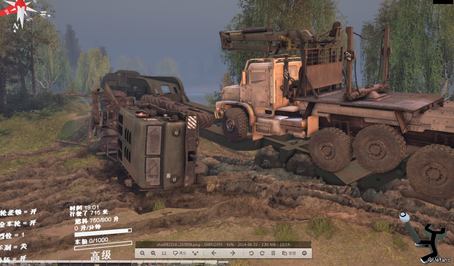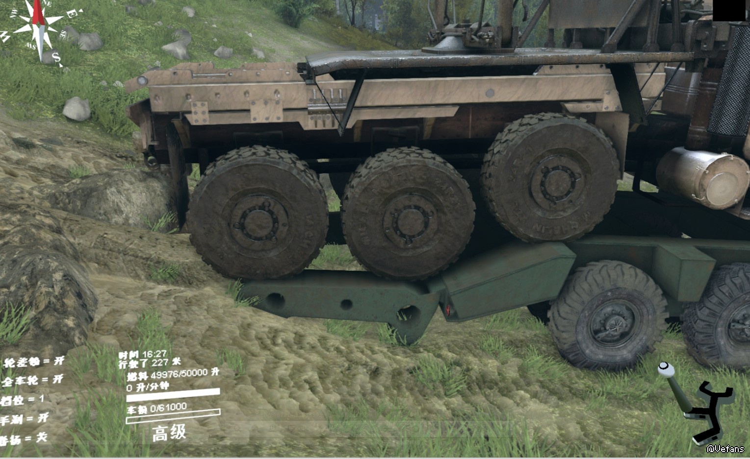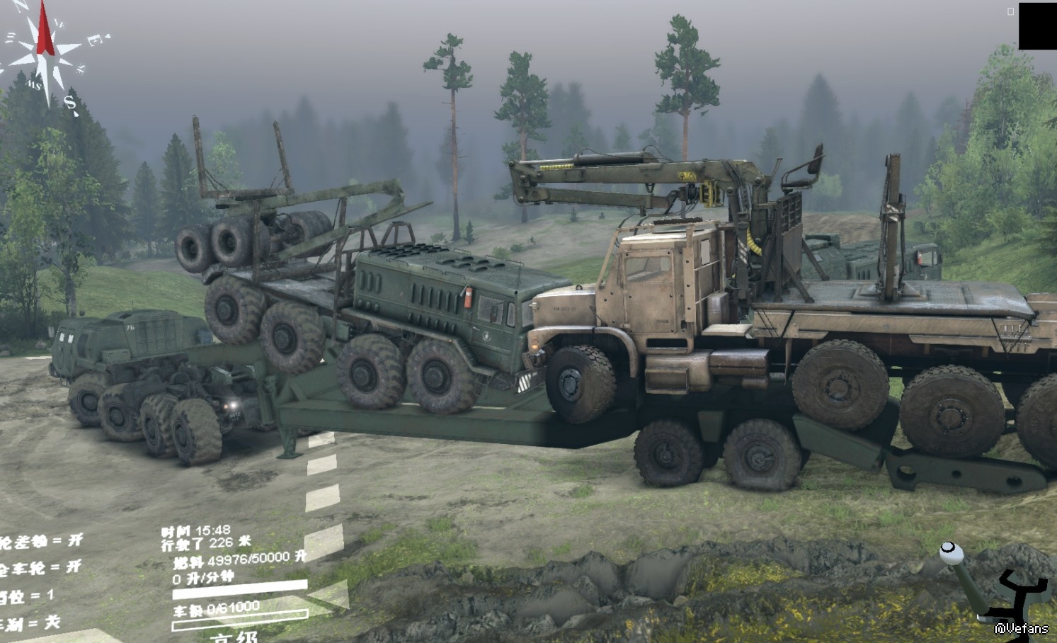 现在的正版Spintires正好反过来了,它会自动拉上手刹,除非跟它连接绞车