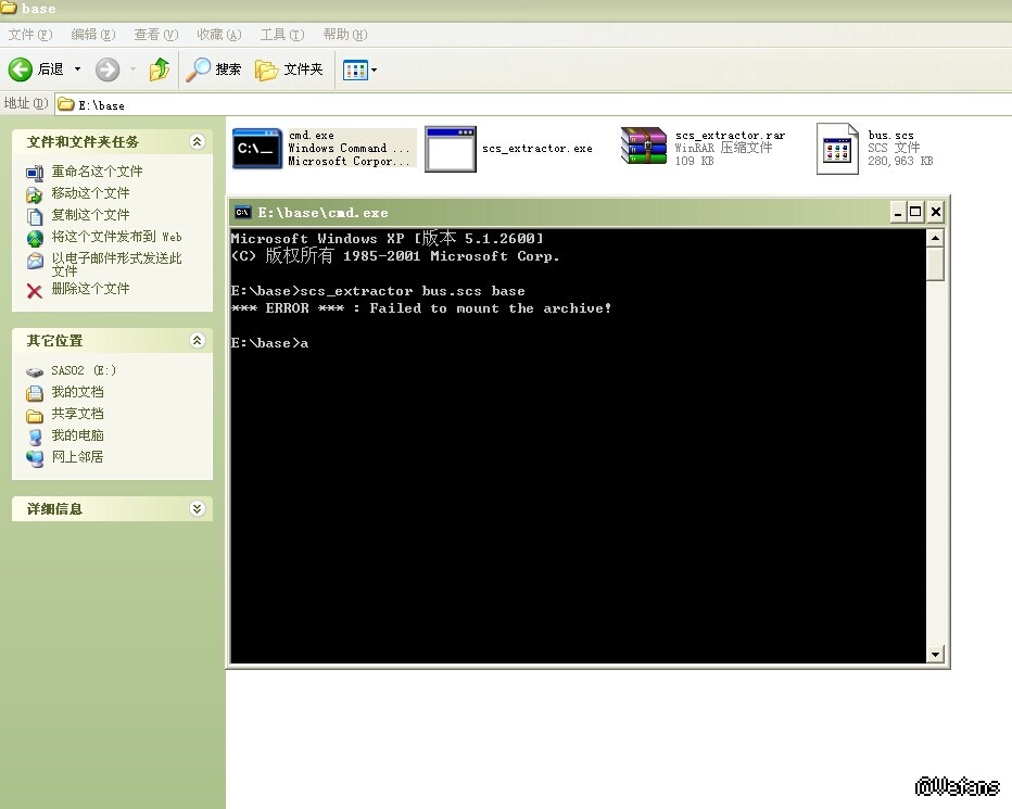 CMD 和scs_extractor 还要解压的文件SCS都放在E:\base里了怎么解压啊?