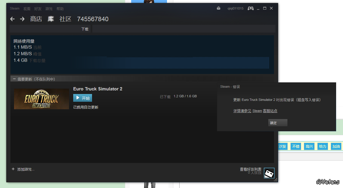 为什么我在Steam更新至1.17.0.31s的时候提示“更新Euro Truck Simulator 2时出现错误(磁盘写入错误)”