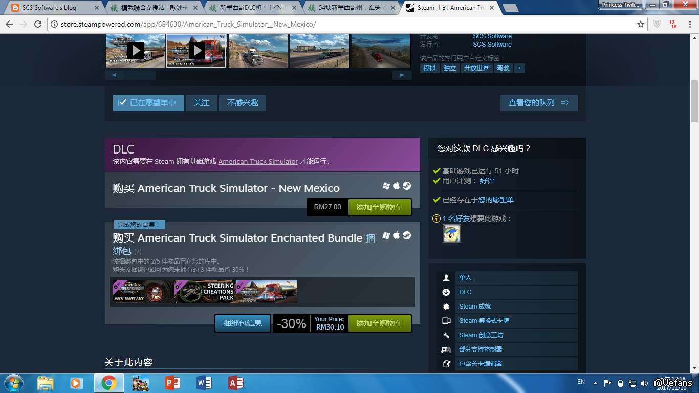 半价是我说的。我是看着Steam上许多游戏都在国区半价才想的。虽然,现在想想,SCS的游戏从来就没有便宜1/3以上过。这次也是67折。抱歉。还有,发错区了。