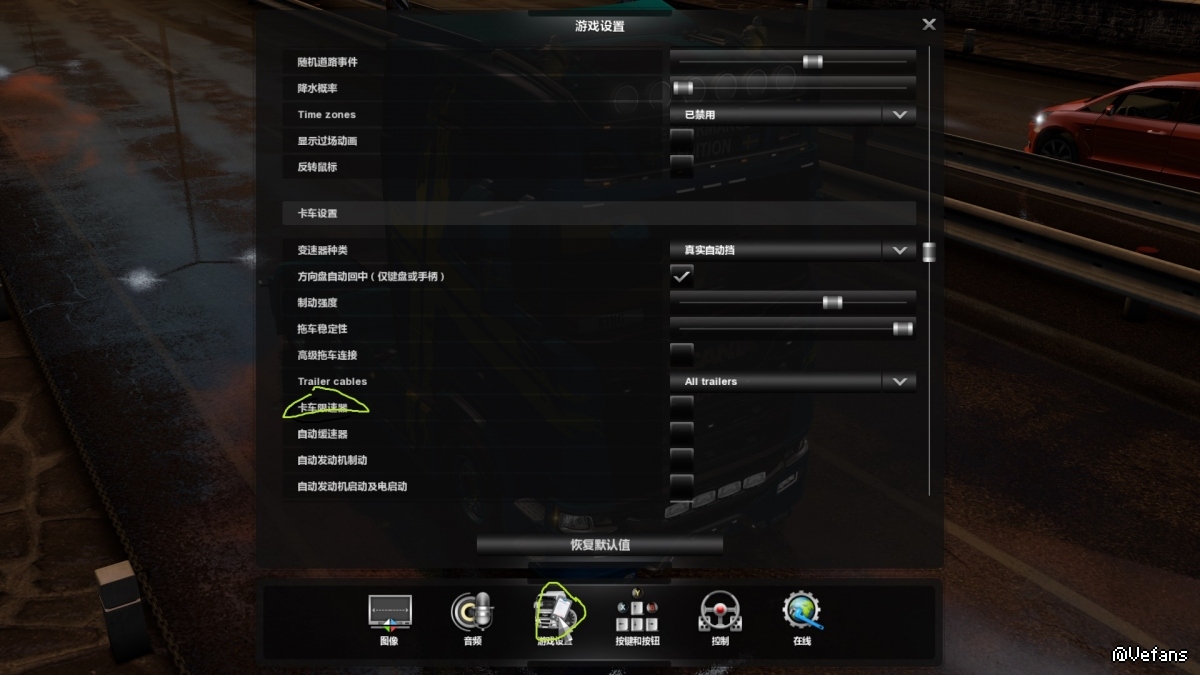 设置-游戏设置-卡车限速器
