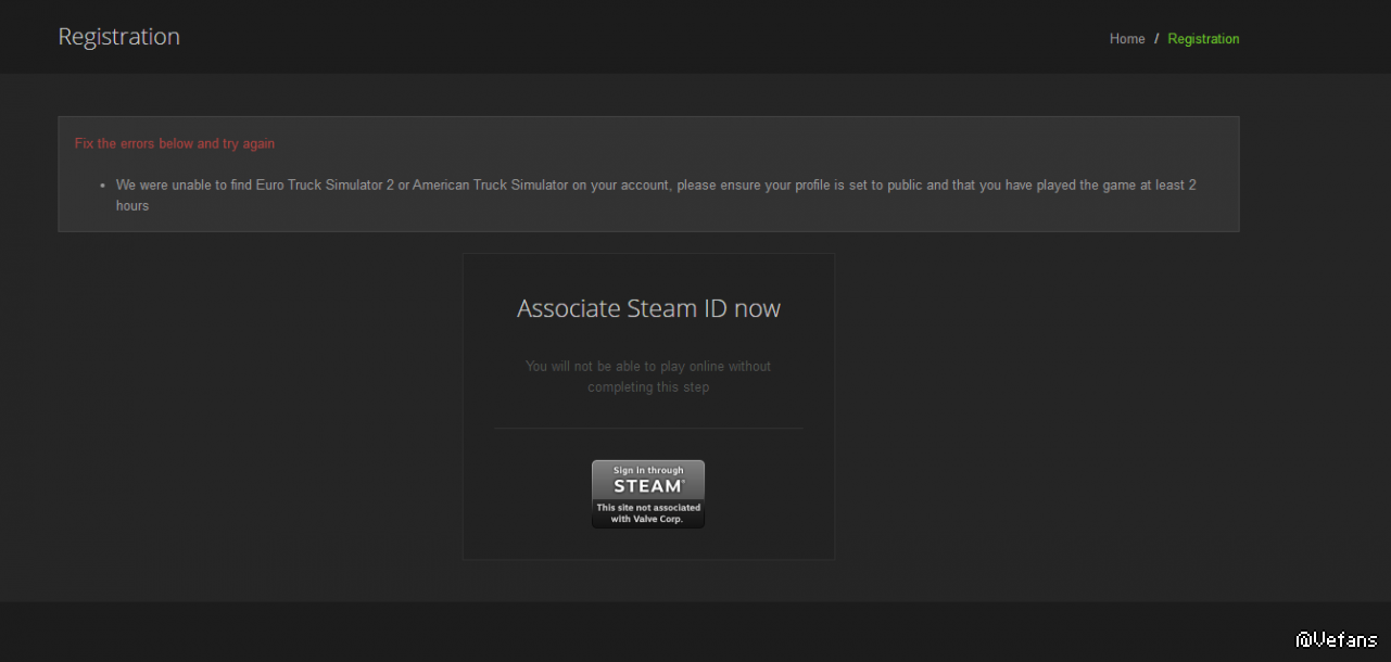 1,打开Truckers MP是没有问题的,可是当我点击Regeister后,弹出的那个需要链接STEAM账户的时候,那个链接框并不像网络上写的是绿色的,而是灰色的。