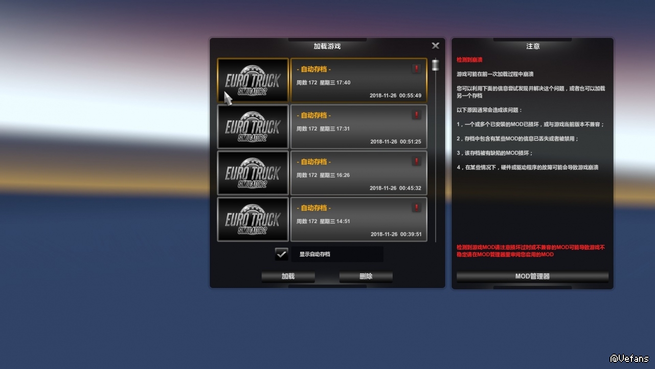 你这些存档以前是有带mod吧?没有mod有些会崩溃的
