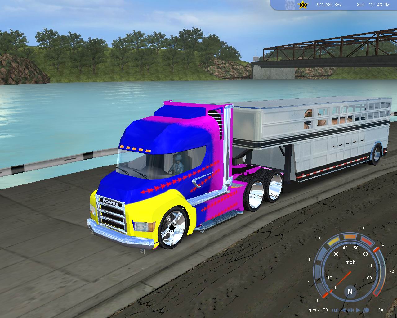 这车漂亮是漂亮可也有两个不足。装上后发现车灯文件冲突,前面两块紫色的方块。在坛子里求了个车灯补丁问题解决。还有