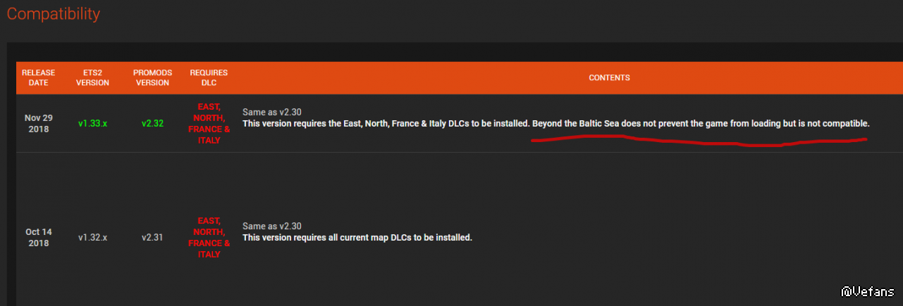 波罗的海DLC不会导致Promods加载失败,但不兼容此DLC
