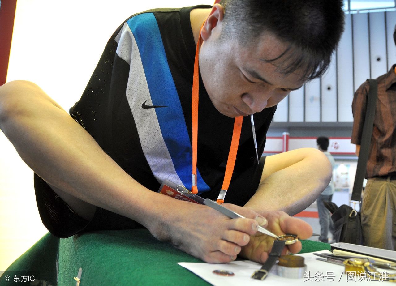 7年前,一位失去双臂的小伙在全国残疾人就业及技能培训成果展暨首届全国残疾人展能节上,展示技能。当天的活动分为残疾人就业和培训成果展览、残疾人技能和才艺展示和残疾人企业产品展销三部分。很多人在这里,找到了施展自己才华和技能的舞台。(图片来自东方IC)