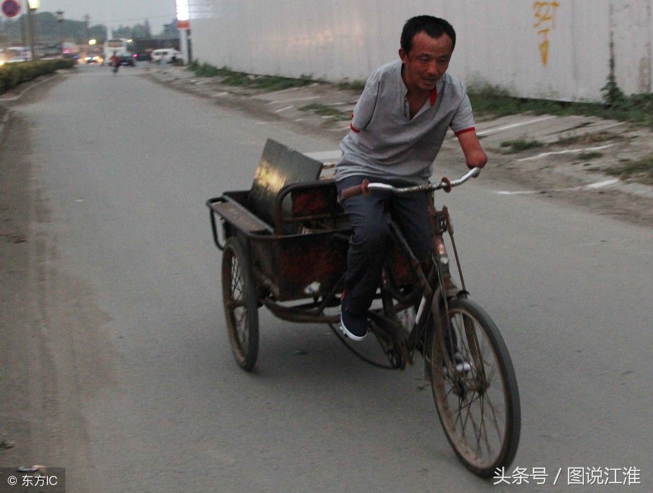 37岁的无臂爸爸高文收摊骑车走在回家的路上。9岁的他时被高压电击伤失去双臂,自2004年起他尝试用嘴写字,期间的辛苦和磨难让他多次产生放弃的念头,好在坚持了下来。2014年开始,他用练就的口书在景区门口摆摊卖字。现在他的女儿也上6年级了,他想要通过自己劳动让女儿接受学校教育。更多图集和深度人物故事,请点击关注头条号图说江淮,带给你有温度的视觉人生。(图片来自东方IC)