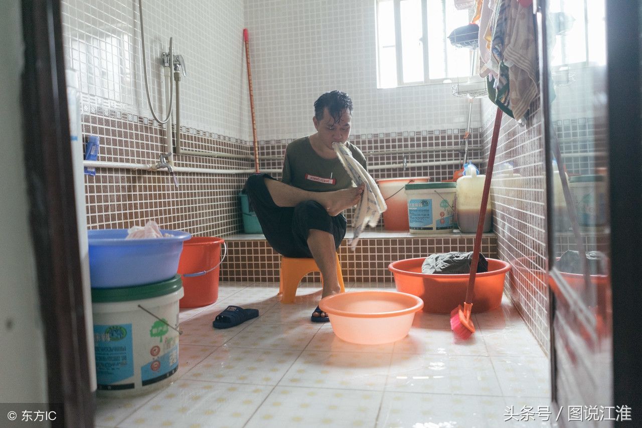 住在惠州惠阳永湖镇的无臂男子邹豪飞依靠双脚与命运做斗争,27年来,他依靠双脚与命运艰难的抗争,勇敢的活着,并用脚绘书法、缝衣捶背登上央视舞台。邹豪飞说,在他自己看来,这些年生活就是一个“毅力”,有毅力才能不断努力,其次“心态”要好,不被少数周围人的眼光所影响,把“毅力”加上“心态”再加上不断的“奋斗”,还有什么过不去的难关。这是他在家里,自己用双脚在洗头。(图片来自东方IC)