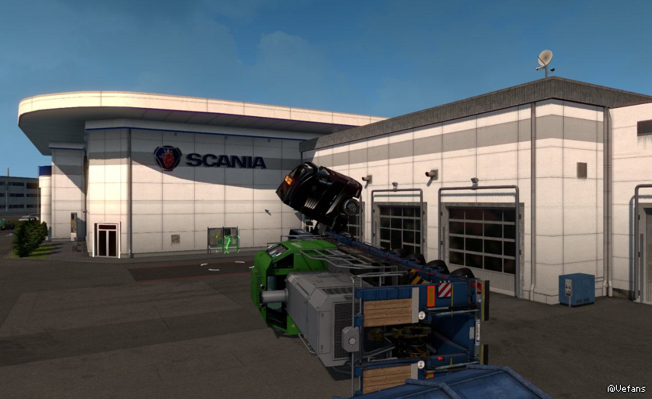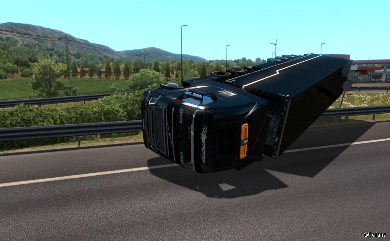 把拖车稳定关到最低之后,再加上沃尔沃FH16容易翻车的特性,然后...“救援服务可以将您和您的卡车运送到某某服务站”