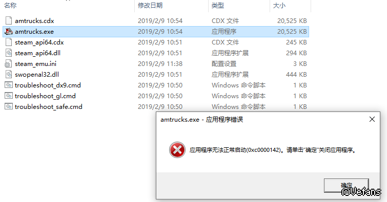 » win10启动美国卡车模拟提示应用程序无法正常启动0xc0000142