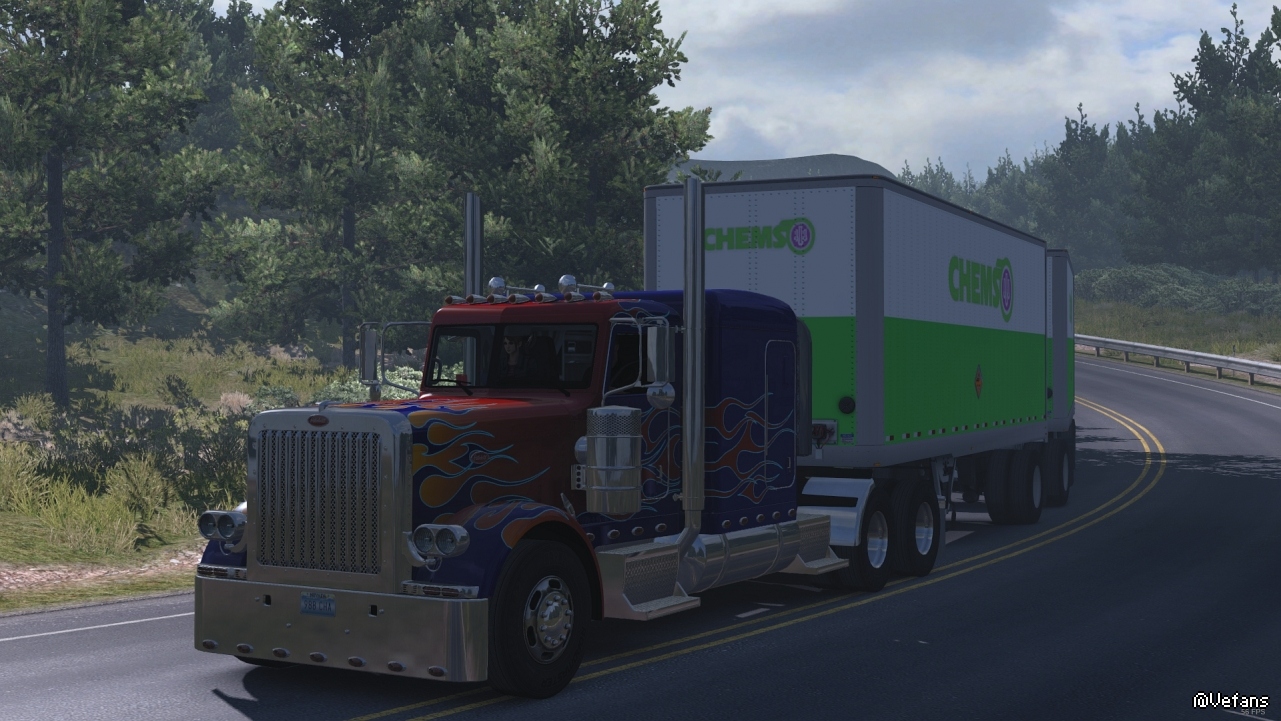 这里有长长的大上坡,也有急转弯,我拖着长长的货柜陪着我的是可靠的彼得比尔特389。我有十足的信心我们一起的旅程还有很长时间!