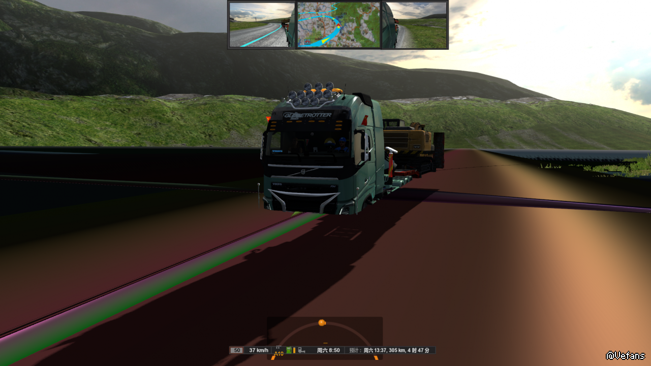 先上图[local]2[/local]如图,按出视角2,也就是车外视角,画面变成那样了,旋转到一个固定方位就又正常,这是怎么回事?地图是promod+瑞典群岛+中东,1.35版本!!
