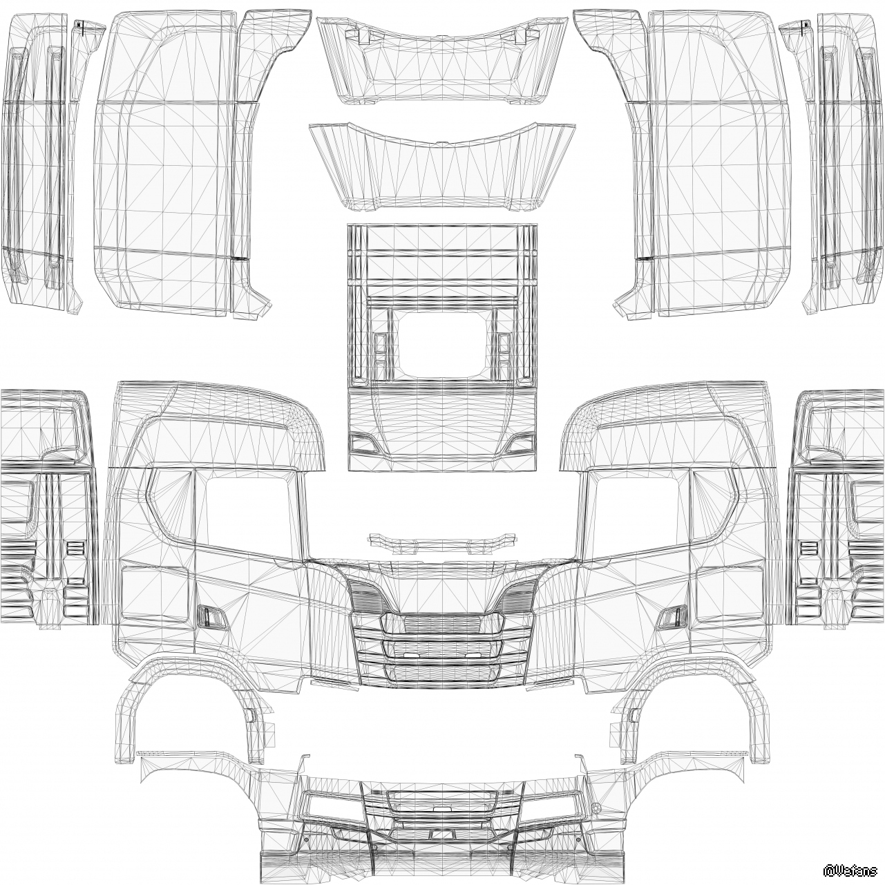 最近喜欢SCANIA S系8X4车头扰流板的贴图位置非常蛋疼