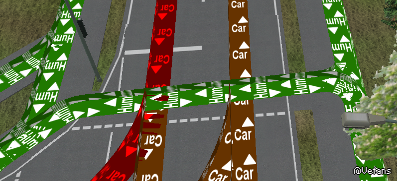 行人在等红绿灯时会站在马路上,导致AI车辆无法通过,如何在编辑器中删除行人绿色轨迹 谢谢
