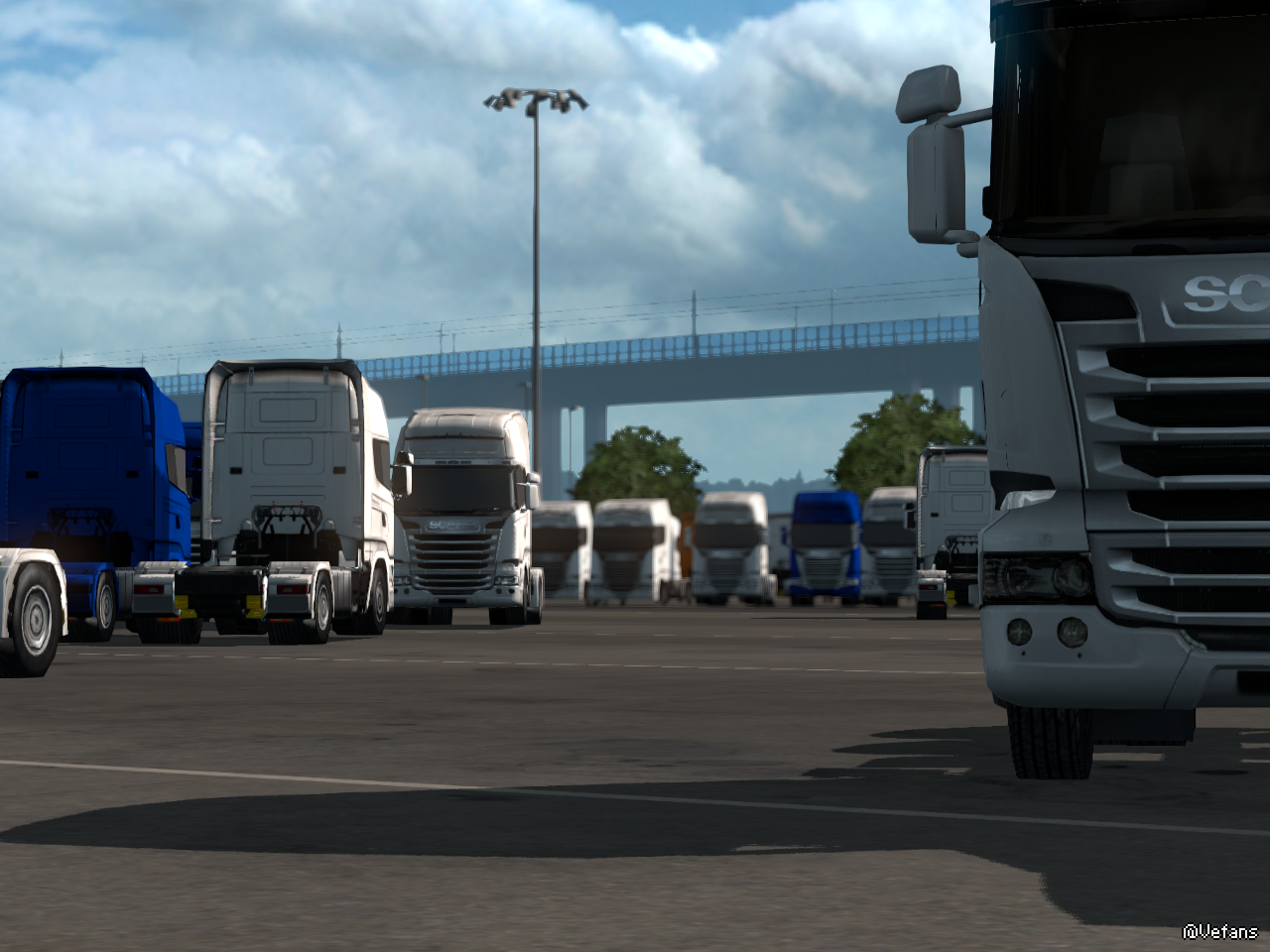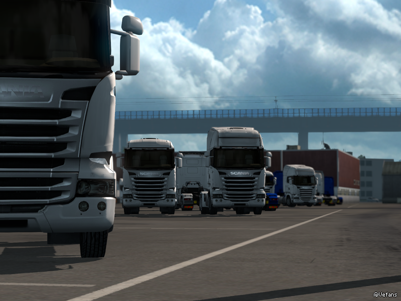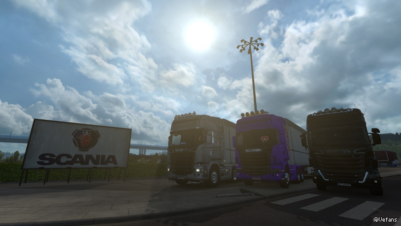 因为Scandinavia DLC是2015年发售的,所以都是老款的SCANIA R。
