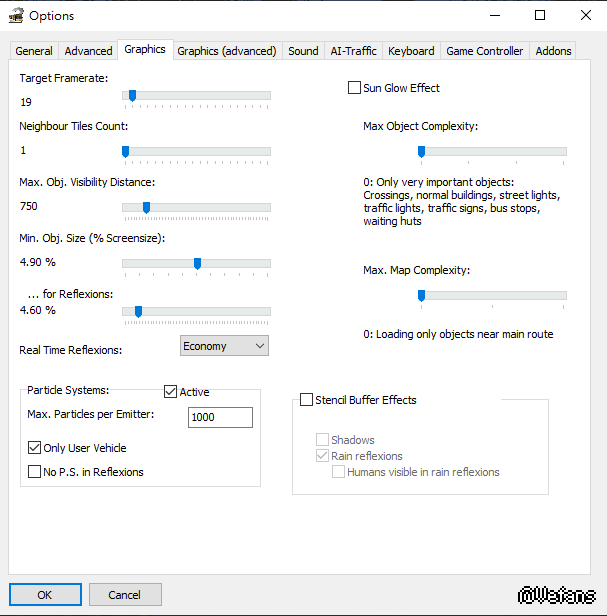 小弟認為卡頓問題不單是framerate的問題,本來我是設定100以上,不過在玩的過程中OMSI程式要求我調低一些提高遊戲運行順暢,這個我也不是很理解為什麼要求降低這個framerate,不過都照降低了,但這個應該是不夠的,因為不同電腦配的顯卡也不同,當然比如GeForce GTX或新款RTX這些是不需要降低OMSI的設定...