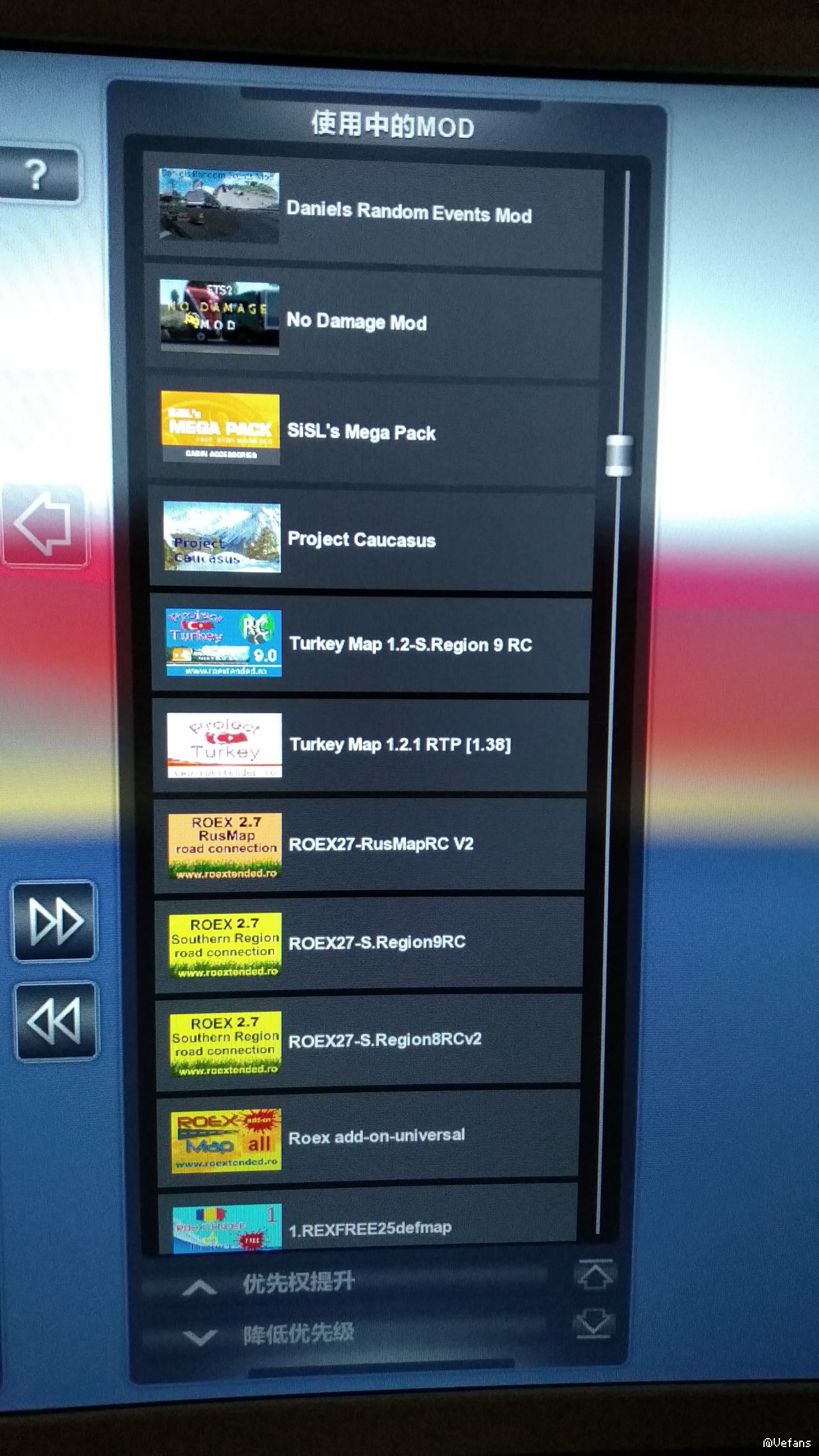 请参考卡车大佬的排序。他的排序跟我的一样。除了,我的是罗马尼亚2.5的免费版,且没有那个收费的2.8版的罗马尼亚和毛子南的连接补丁。而且。我没有用卡车大佬的里面的promzona和开放空间的图。另外,也没用那个波兰重建和promods,帽子图,罗马尼亚图的四合一链接补丁。用的仅仅是不带波兰重建的三合一补丁。