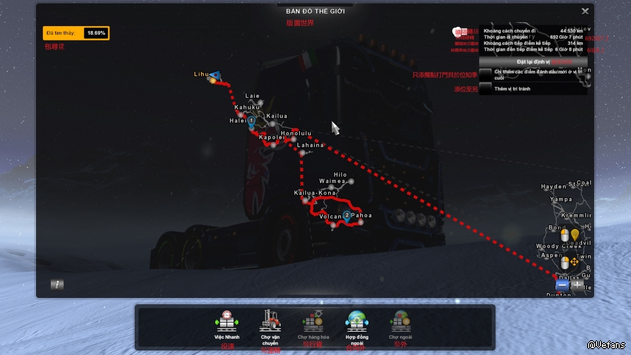 这是欧洲卡车模拟2桌面的越南语和字喃字幕,我们的马里奥地图从夏威夷出发,前往日本东京