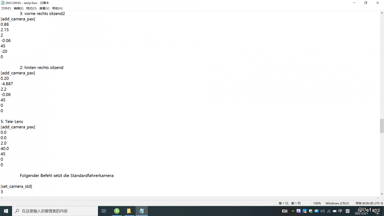 在你想要截图的bus文件里,用记事本打开,在Folgender Befehl setzt die Standardfahrerkamera:上面一格输入: