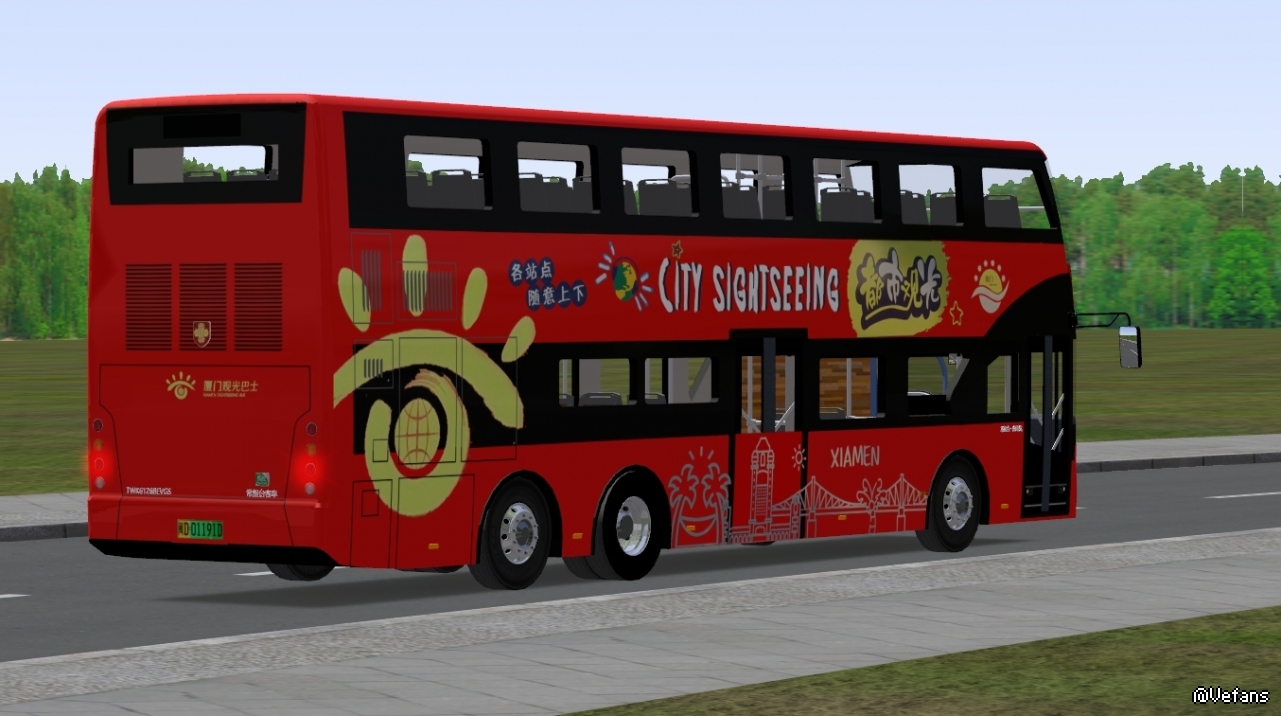 参考现实中安凯的三轴双层巴士的涂装移植而来