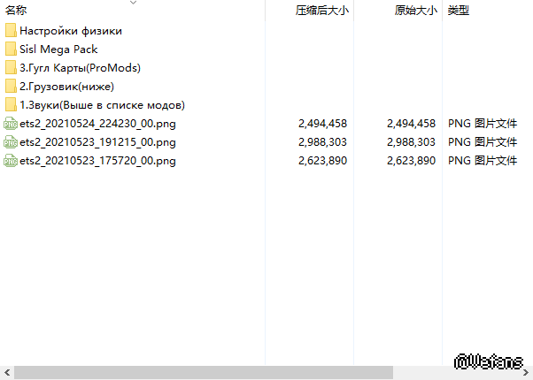 先找到容量最大的车子本体scs文件就够了,其他文件不是必要的,都是改装