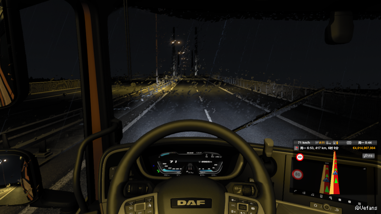 夜晚的厄勒海峡大桥,真的非常美,加上雨水效果,听着电台喝着咖啡,真的太享受了,只不过有点黑。