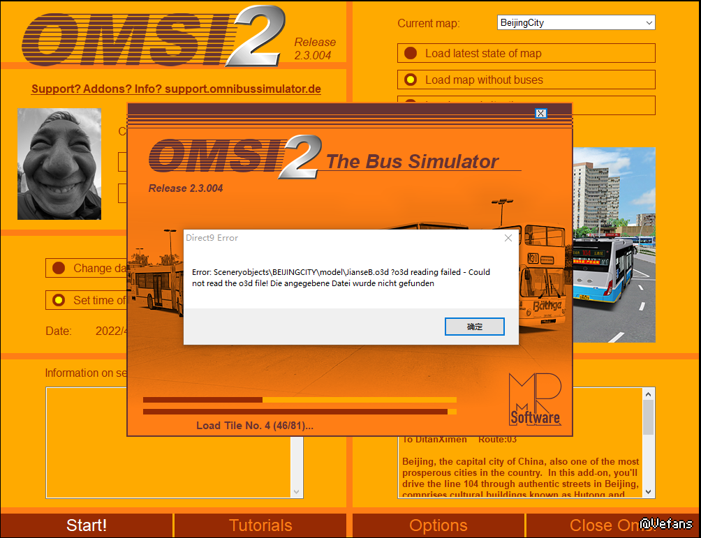 但地图仍能加载,也没有缺地块,但进地图后,会在安贞桥附近报错,能点掉,然后走一段又会报错直到游戏崩掉