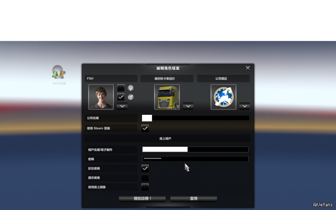 首次开角色档案已有登入线上帐户,可以用steam工作坊mod
