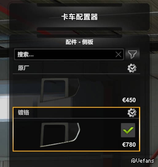 如图1所示,后面的车窗被涂装给覆盖了,但是我目前38级,侧板只有两个选择,并没让涂装显示的选择。是我目前等级不够没有解锁,还是图1用的Mod?