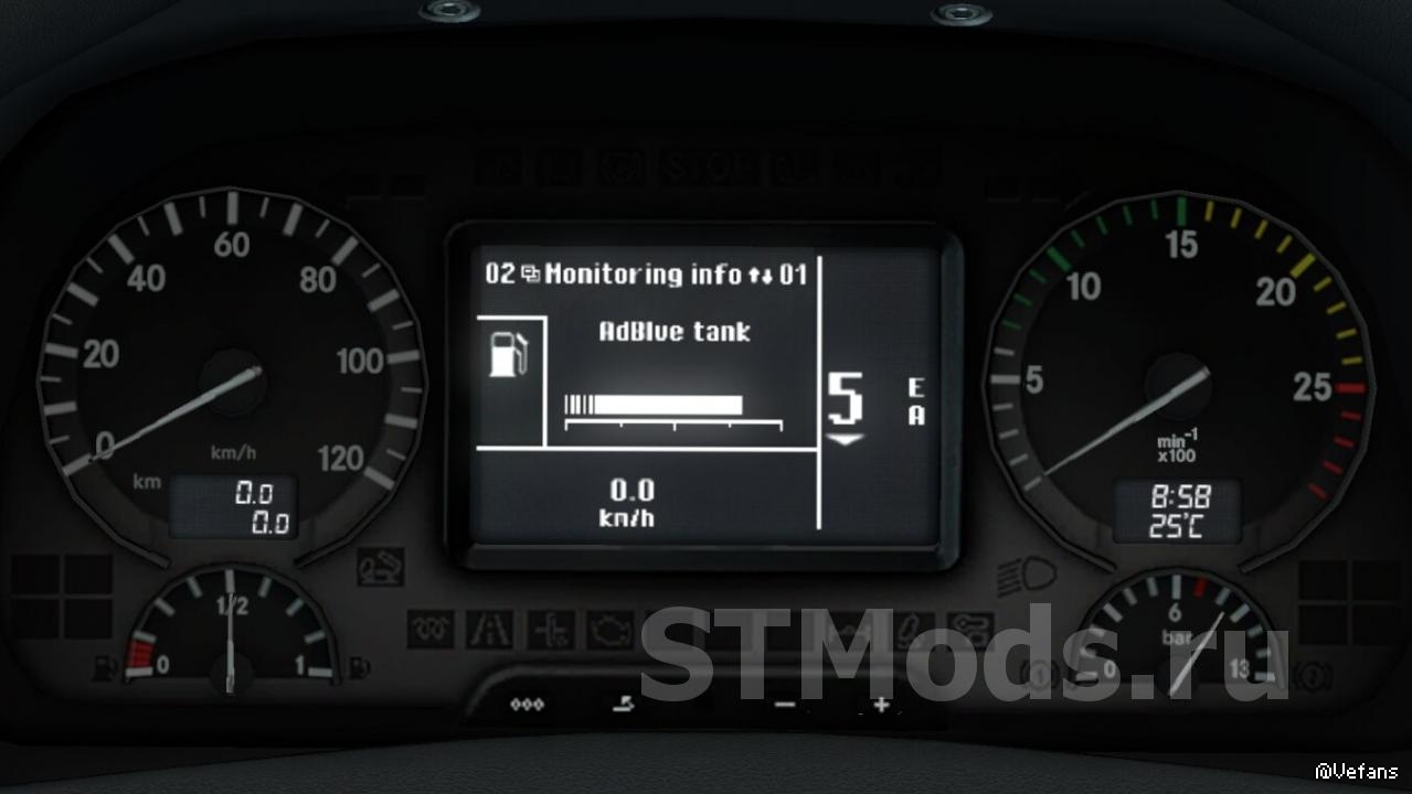 Этот мод приборной панели нацелен на точное воссоздание приборной панели компьютера Mercedes-Actros MP3.