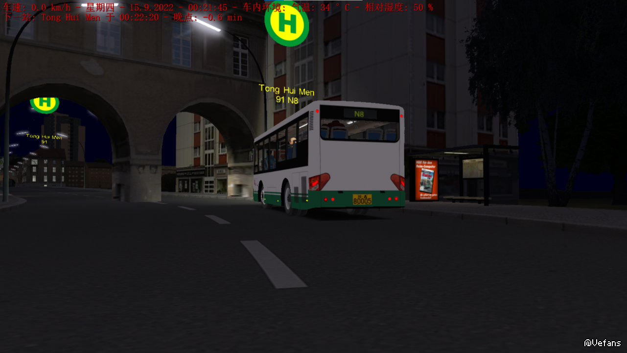 晚上试玩金河夜8路,场站极其狭窄,所以开始就用了小海格跑 (这车手感很一般,当AI车倒是不错) 不过客流太少了,六米就够用