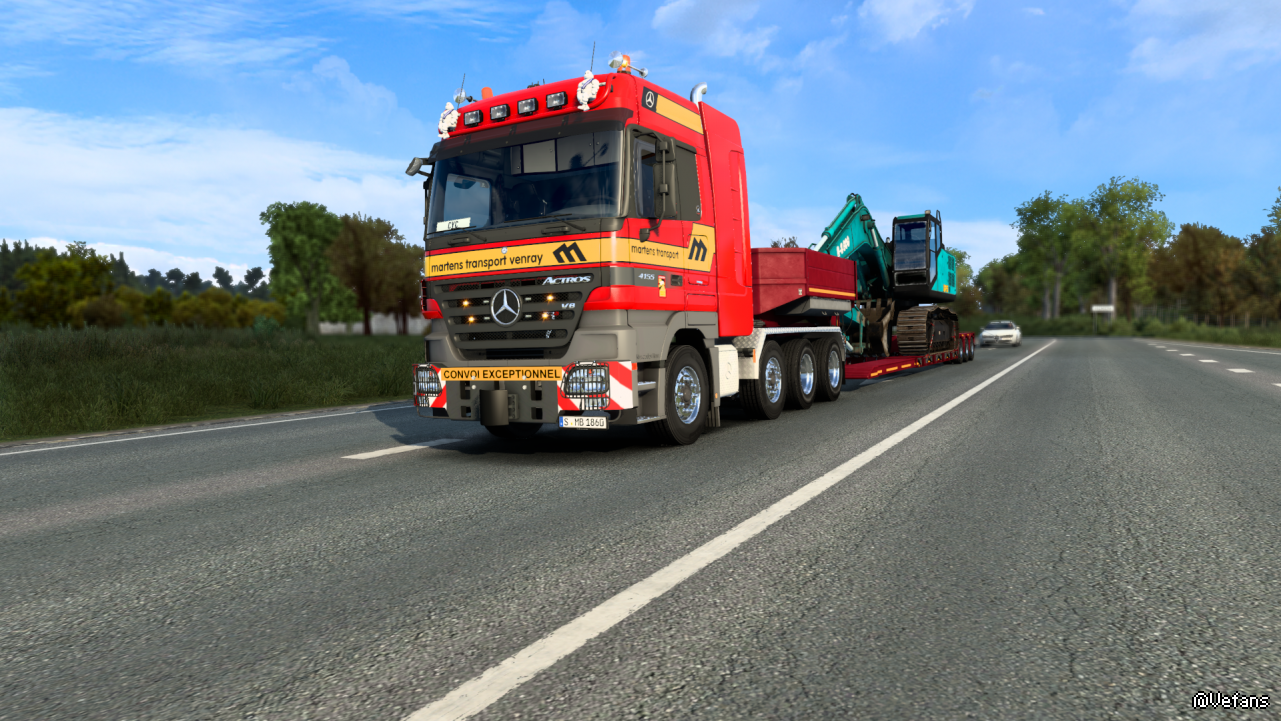 Mercedes-Benz Actros MP2是我比较喜欢的一个大奔mod,而且车型不仅经典还性能满满,所以想上几张截图分享一下