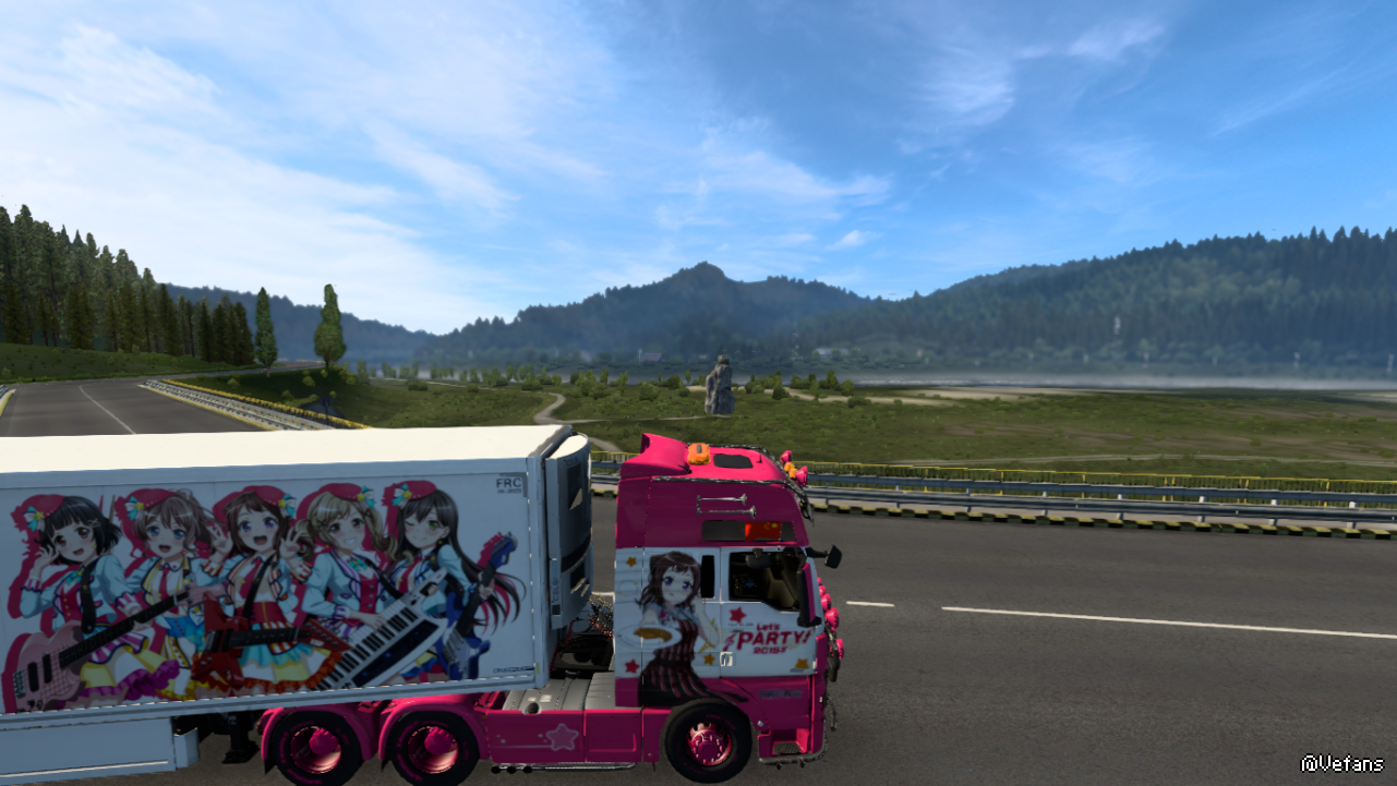 今日,我又花大价钱买了辆户山香澄主题痛车,用的是MAN 2019款TGX,这也是第二辆Poppin'Party痛车,买了之后去罗马尼亚拉了几车货,虽然户山香澄的涂装我喜欢