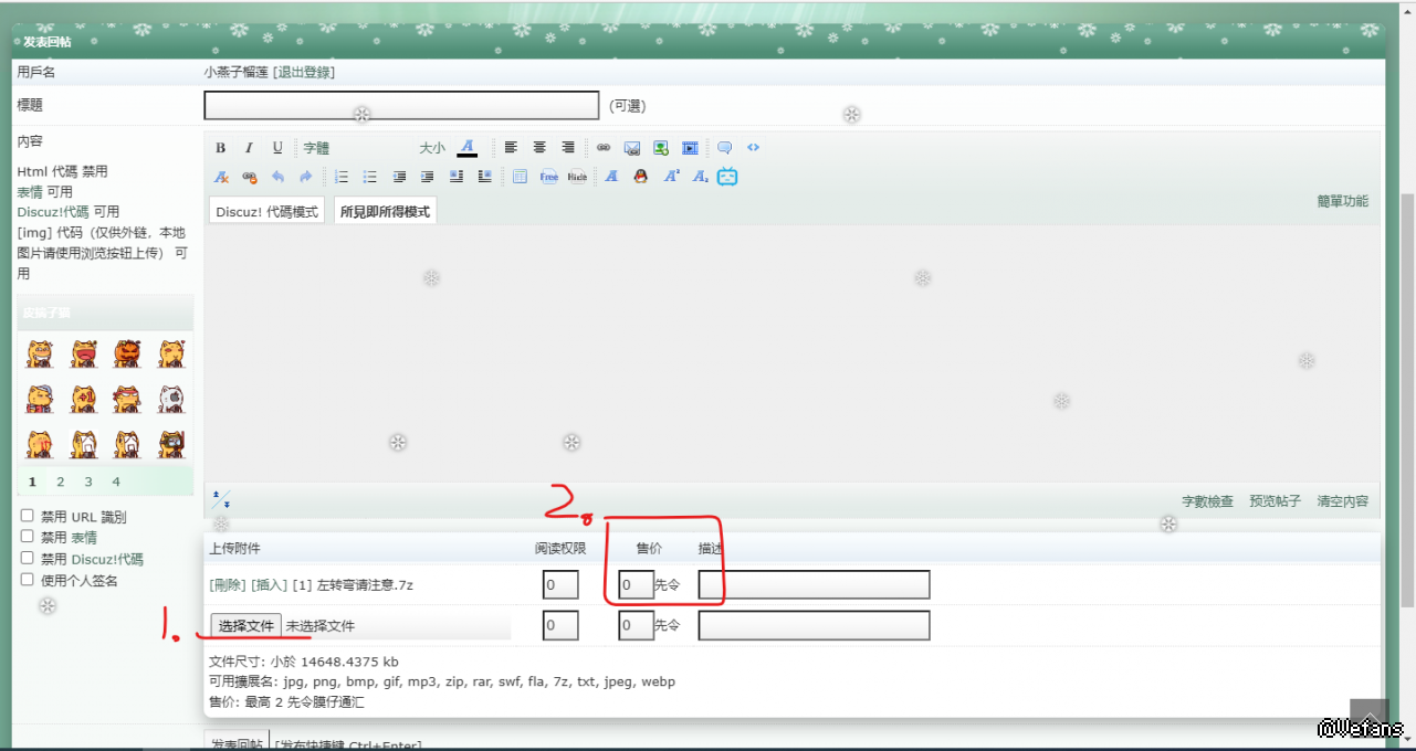 请问如何发布收费(模汇)附件的帖子