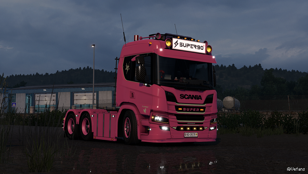 目前来讲是最好的灯组【模型,亮度,影射纹理均属上流】包含:卡车,拖车各类辅灯,装饰灯,标牌,贴纸,一些改装配件天线等等!车牌的双向灯非常不错【不放大至一定倍数根本无法体现出模型细节 】游戏里大家可能不太注意这些东西!按萌萌的逻辑脚多就是叼管你那么多................